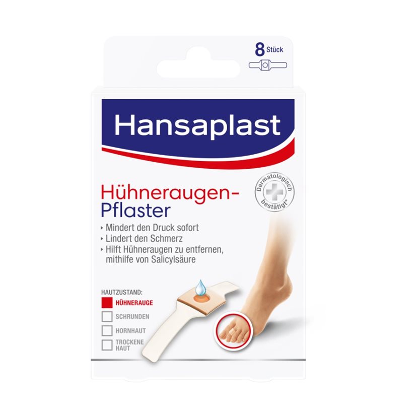 A Hansaplast Tyúkszemtapasz megpuhítja a tyúkszemet szalicilsav aktív hatóanyagának köszönhetően. A tapasz habgyűrűjének a közepén található ez a hatóanyag, amely a tyúkszem körüli bőrsejtek struktúráinak fellazításával fejti ki hatását. A megkeményedett bőr és a körülötte lévő bőrsejtek megpuhulnak, a bőr hidratáltsága megnő. Így a tyúkszem már könnyen eltávolítható. A tyúkszemtapasz használata egyszerű és kényelmes, mindezek mellet védi és kipárnázza az érintett bőrterületet. Megbízhatóan tapad, ezáltal biztonságos használatot nyújt.