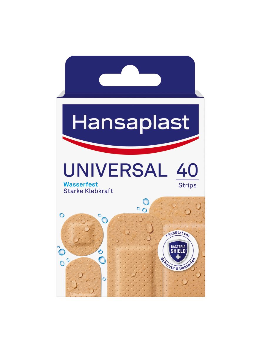 A Hansaplast Universal 40 Strips tapasz vízálló, légáteresztő védelmet nyújt a kisebb sebek fedésére.A Hansaplast Universal tapaszok taszítják a vizet és a szennyeződéseket. A nedvszívó, tapadásmentes sebtapasz védi és kipárnázza a sebet. Az extra erős tapadás biztosítja, hogy a tapasz a helyén maradjon. Többcélú felhasználásra. Használati utasítás: Tisztítsa meg a sebet és óvatosan szárítsa meg a bőrt. 0% LATEX: Nincs a latex okozta allergia kockázata.